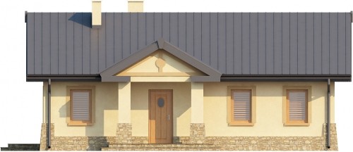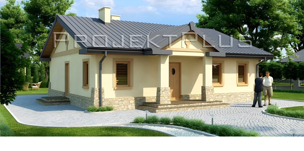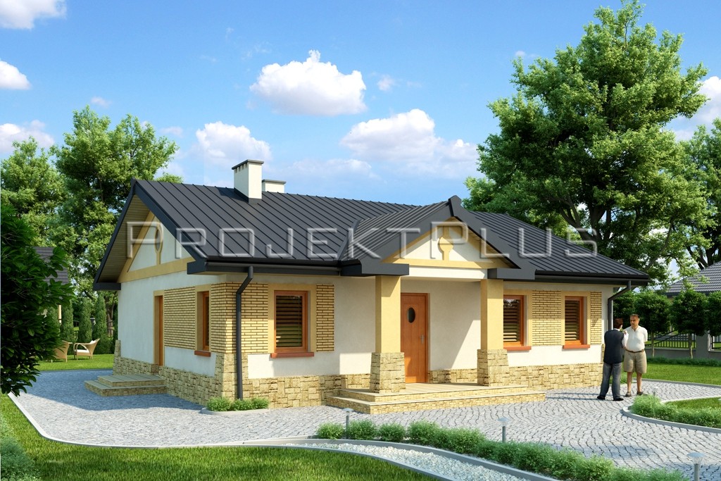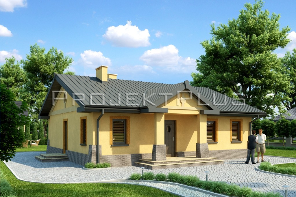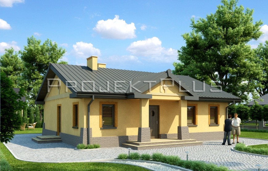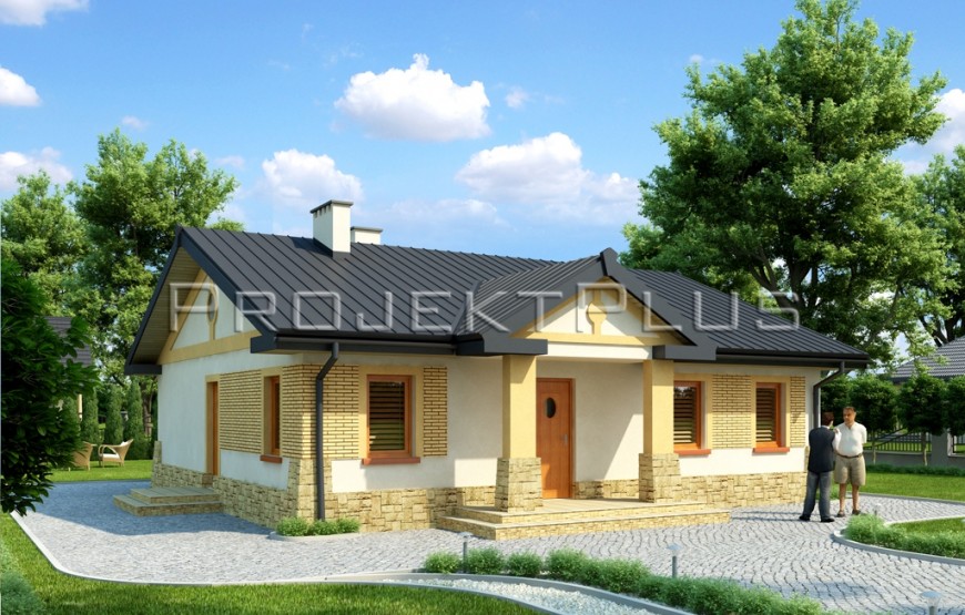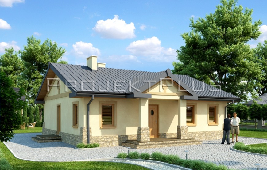 Dispozíciu domu tvorí kuchyňa, obývacia izba, 3xspálňa, kúpeľňa s WC. Z obývacej izby vedie výstup na terasu. Tento dom je možné objednať aj v bezbariérovom vyhotovení. Dom je vhodný do nízkej okolitej zástavby. Neobytné podkrovie môže slúžiť ako úložný priestor (v prípade sedlovej / valbovej strechy).