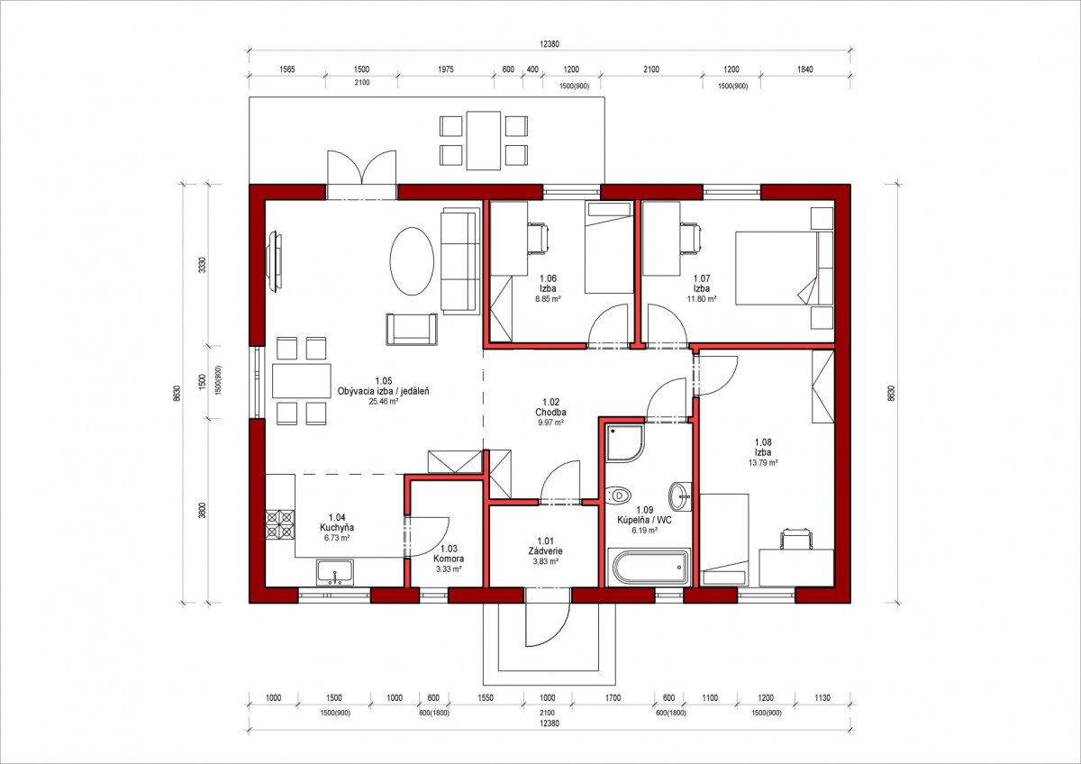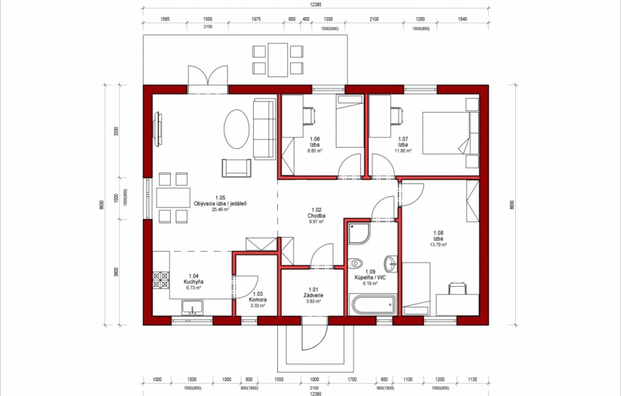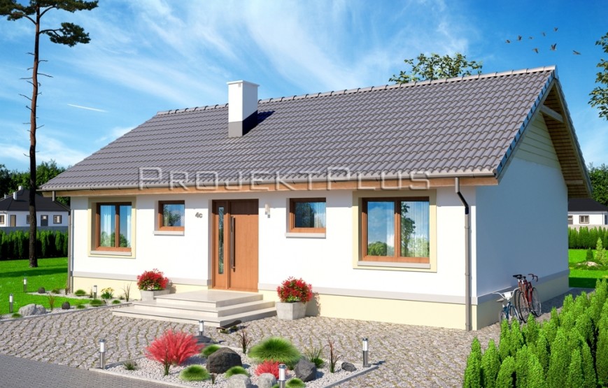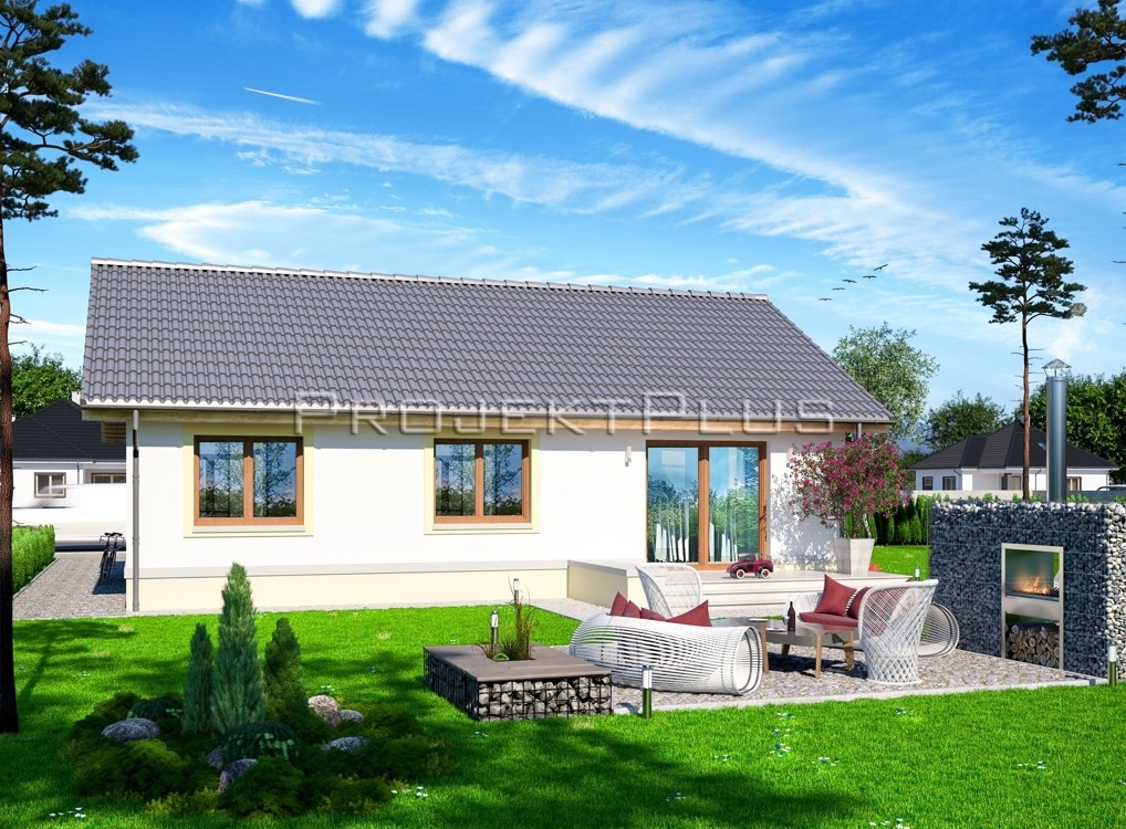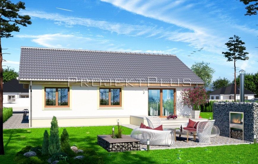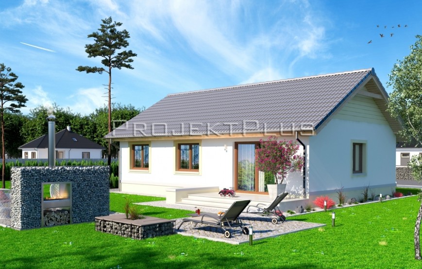 Dispozíciu domu tvorí kuchyňa, obývacia izba, 3xspálňa, kúpeľňa s WC. Z obývacej izby vedie výstup na terasu. Tento dom je možné objednať aj v bezbariérovom vyhotovení. Dom je vhodný do nízkej okolitej zástavby. Neobytné podkrovie môže slúžiť ako úložný priestor (v prípade sedlovej / valbovej strechy).
