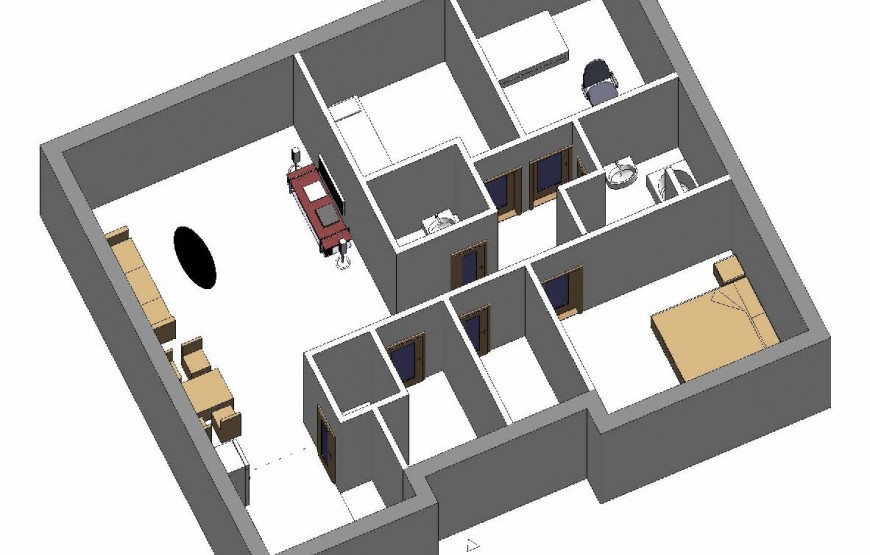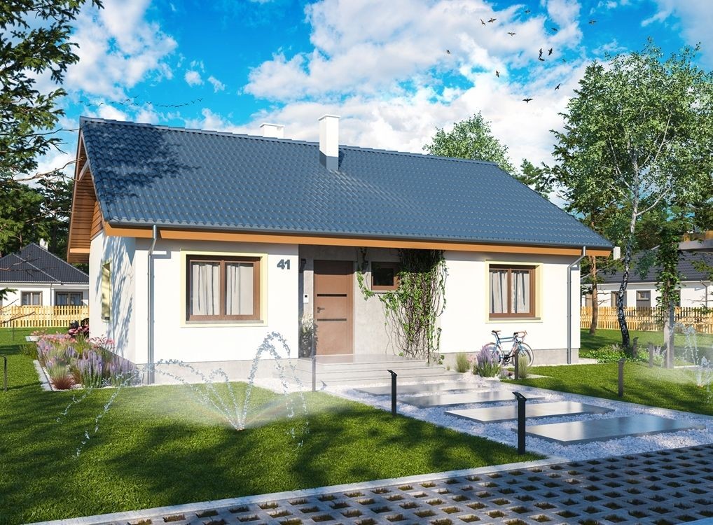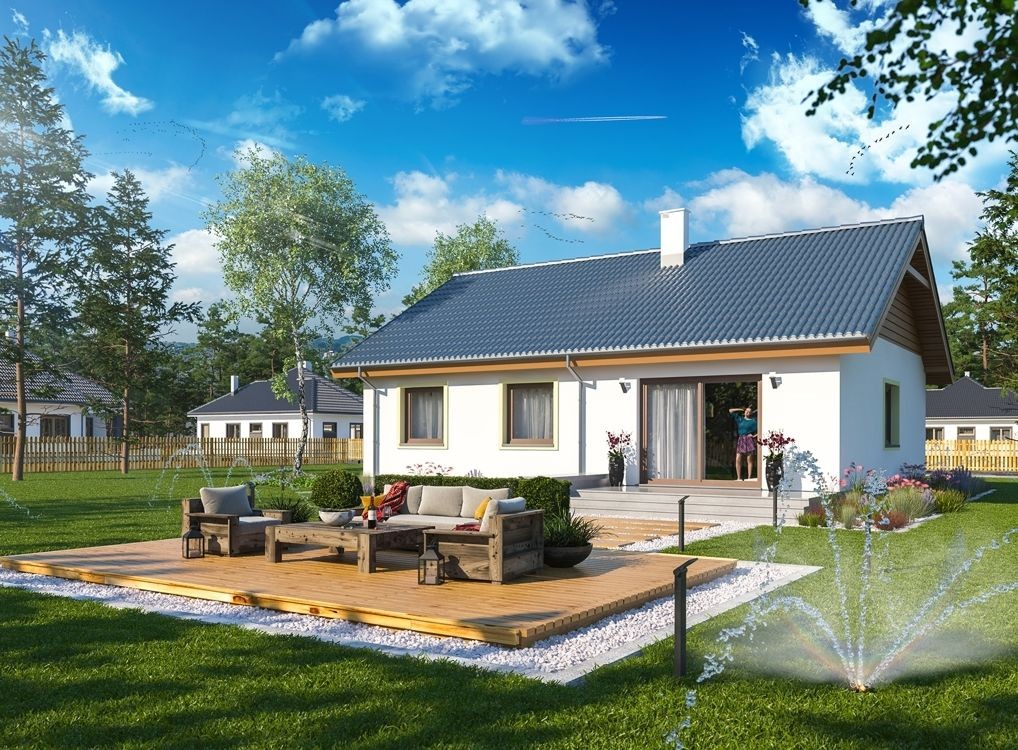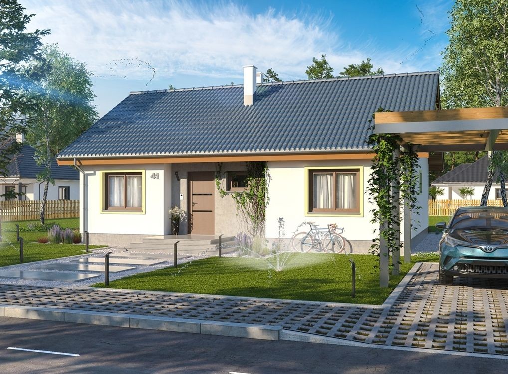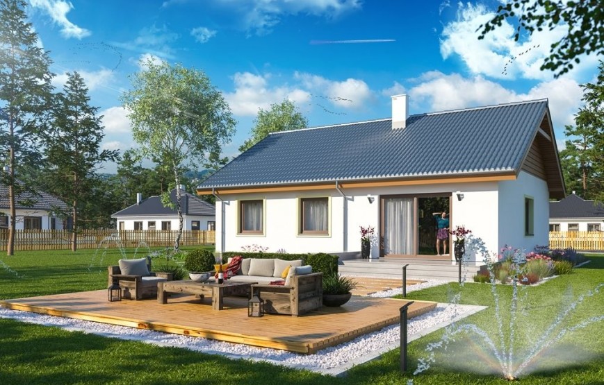 Dispozíciu domu tvorí kuchyňa, obývacia izba, 3xspálňa, kúpeľňa s WC. Z obývacej izby vedie výstup na terasu. Tento dom je možné objednať aj v bezbariérovom vyhotovení. Dom je vhodný do nízkej okolitej zástavby. Neobytné podkrovie môže slúžiť ako úložný priestor (v prípade sedlovej / valbovej strechy).