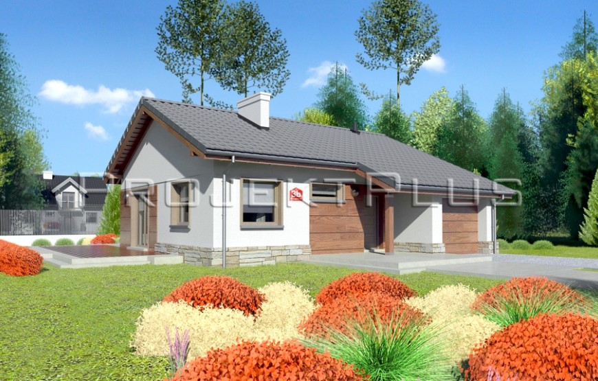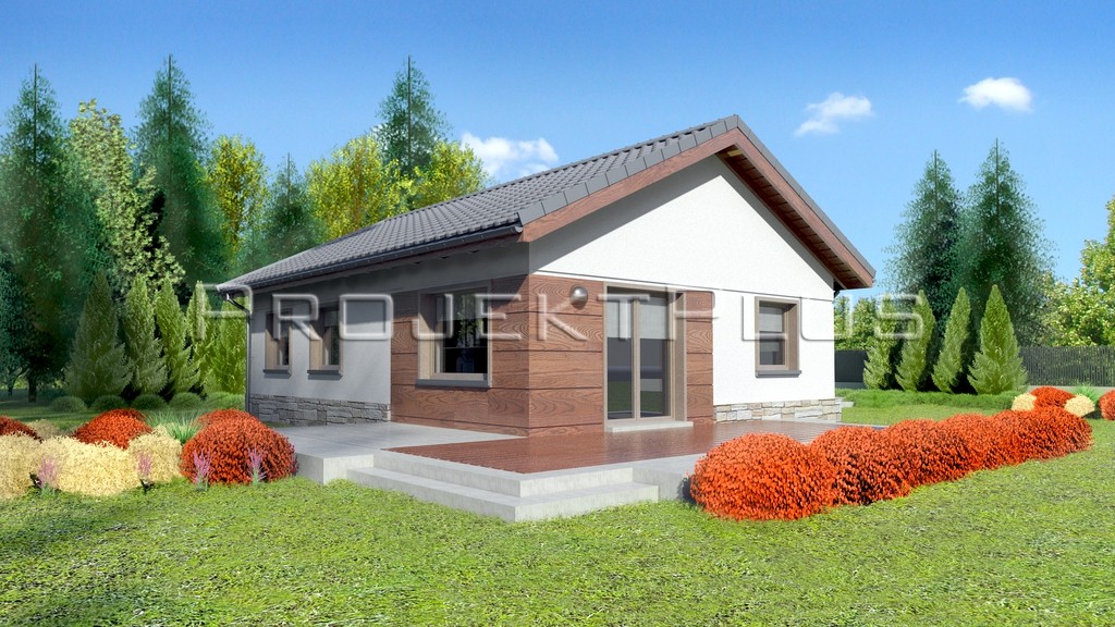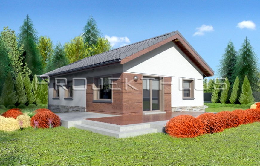 Dispozíciu domu tvorí kuchyňa, obývacia izba, 3xspálňa, kúpeľňa s WC. Z obývacej izby vedie výstup na terasu. Tento dom je možné objednať aj v bezbariérovom vyhotovení. Dom je vhodný do nízkej okolitej zástavby. Neobytné podkrovie môže slúžiť ako úložný priestor (v prípade sedlovej / valbovej strechy).