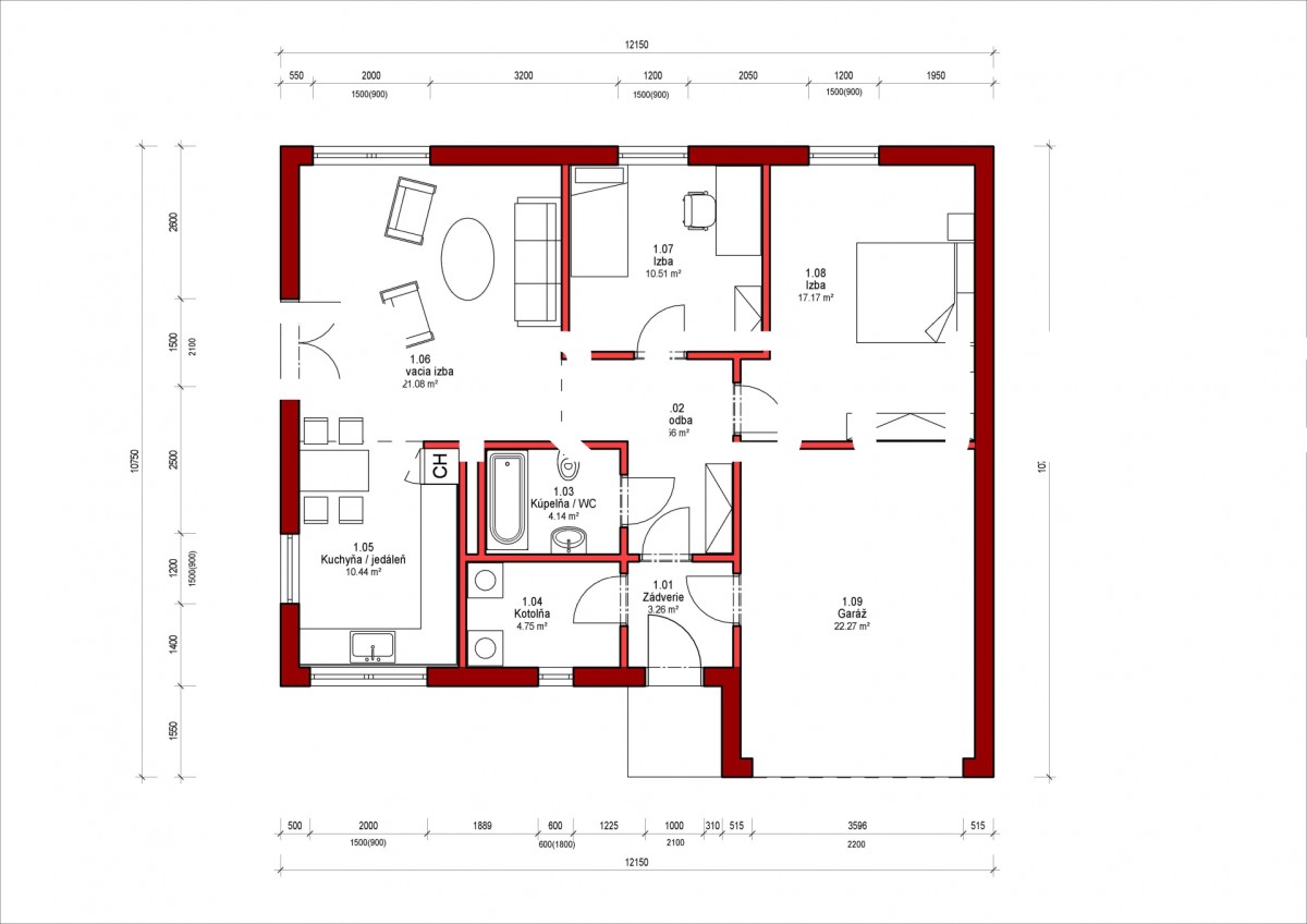 Samostatne stojaci prízemný rodinný dom FLEX 118 je vhodný do rovinatého, prípadne mierne svahovitého terénu. Je to strednej veľkostnej kategórie určený pre 4-5 člennú rodinu.