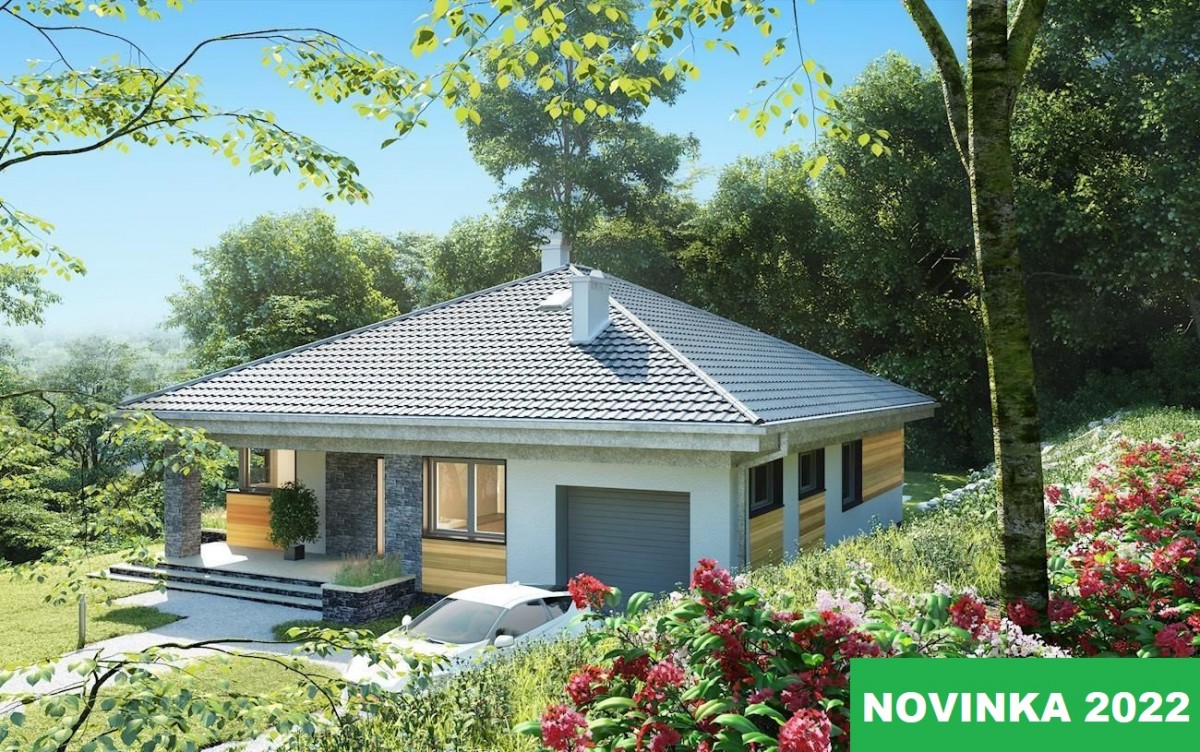 Samostatne stojaci prízemný rodinný dom FLEX 150 je vhodný do rovinatého, prípadne mierne svahovitého terénu. Je to strednej veľkostnej kategórie určený pre 4-5 člennú rodinu.