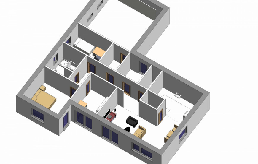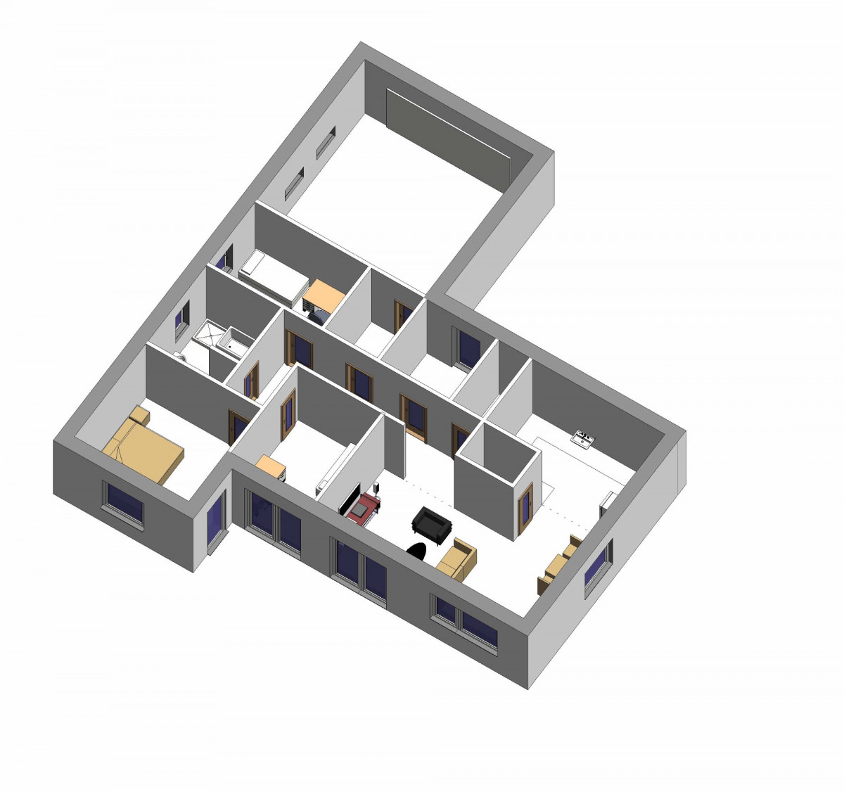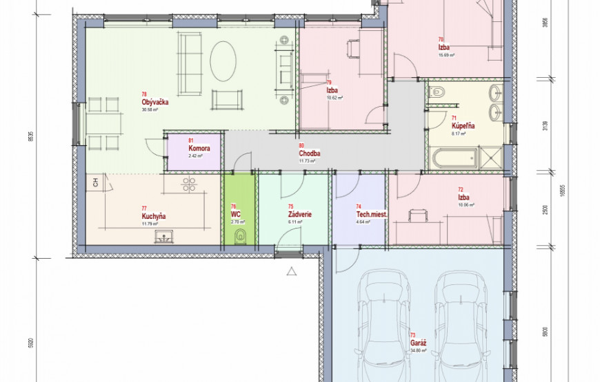 Samostatne stojaci prízemný rodinný dom FLEX 170 je vhodný do rovinatého, prípadne mierne svahovitého terénu. Je to dom väčšej veľkostnej kategórie určený pre 4-5 člennú rodinu.