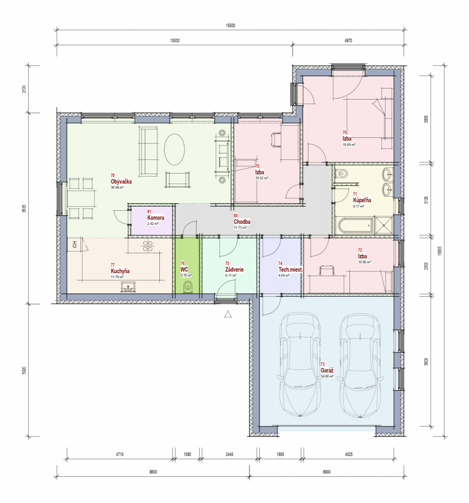 Dispozíciu domu tvorí kuchyňa, obývacia izba, 2xspálňa, kúpeľňa s WC. Z obývacej izby vedie výstup na terasu. Tento dom je možné objednať aj v bezbariérovom vyhotovení. Dom je vhodný do nízkej okolitej zástavby. Neobytné podkrovie môže slúžiť ako úložný priestor (v prípade sedlovej / valbovej strechy).