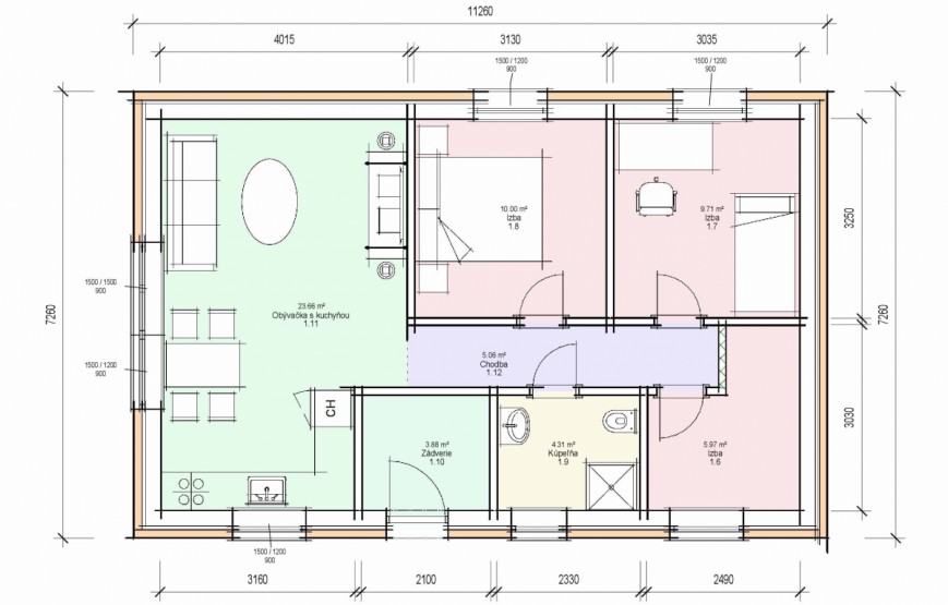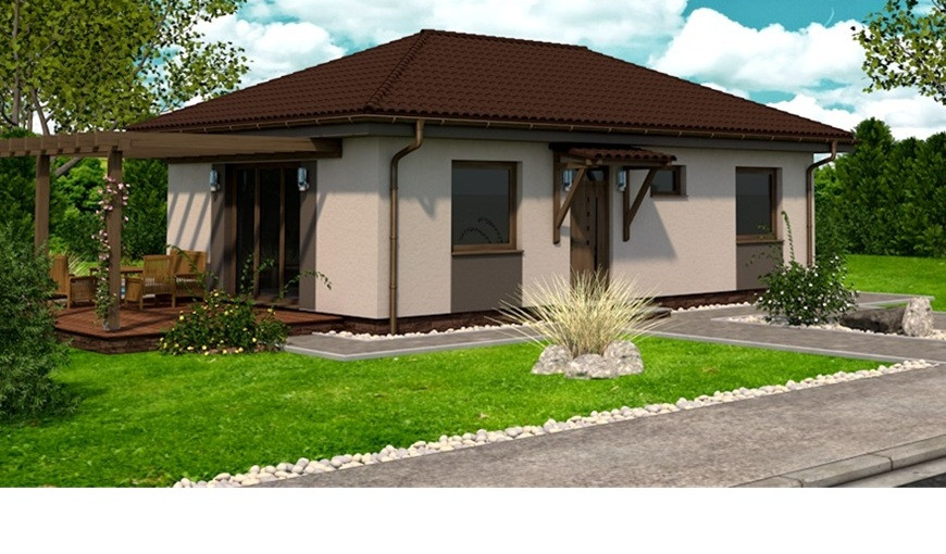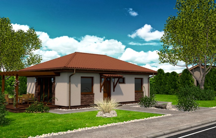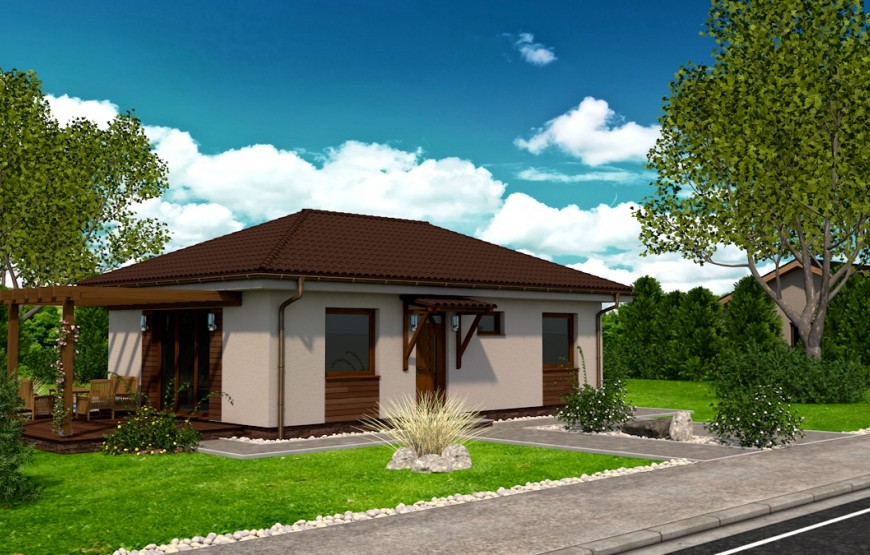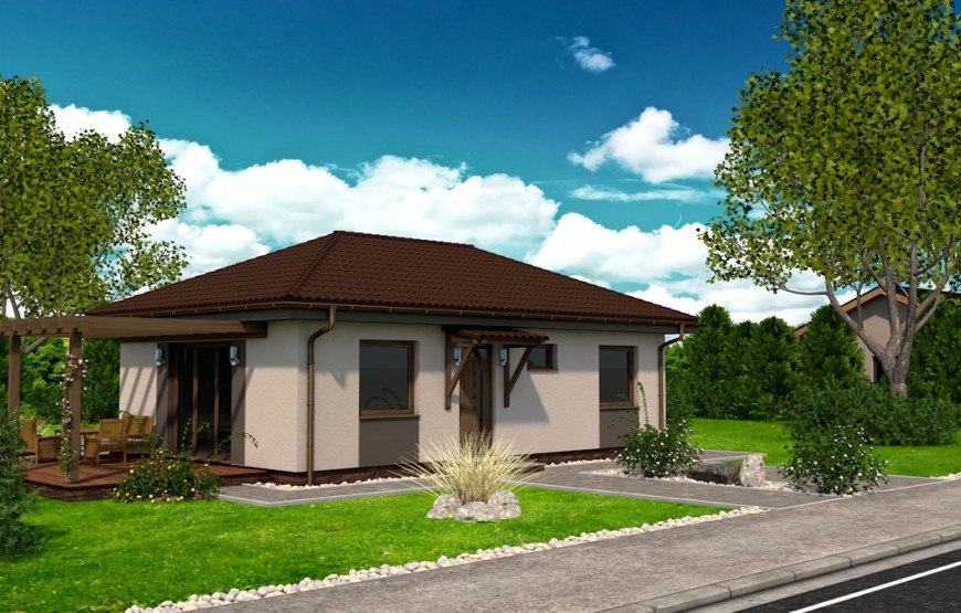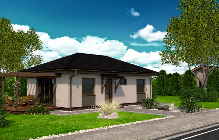 Dispozíciu domu tvorí kuchyňa, obývacia izba, 2xspálňa, kúpeľňa s WC. Z obývacej izby vedie výstup na terasu. Tento dom je možné objednať aj v bezbariérovom vyhotovení. Dom je vhodný do nízkej okolitej zástavby. Neobytné podkrovie môže slúžiť ako úložný priestor (v prípade sedlovej / valbovej strechy).