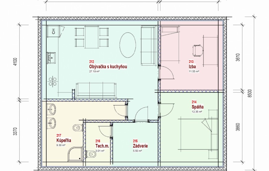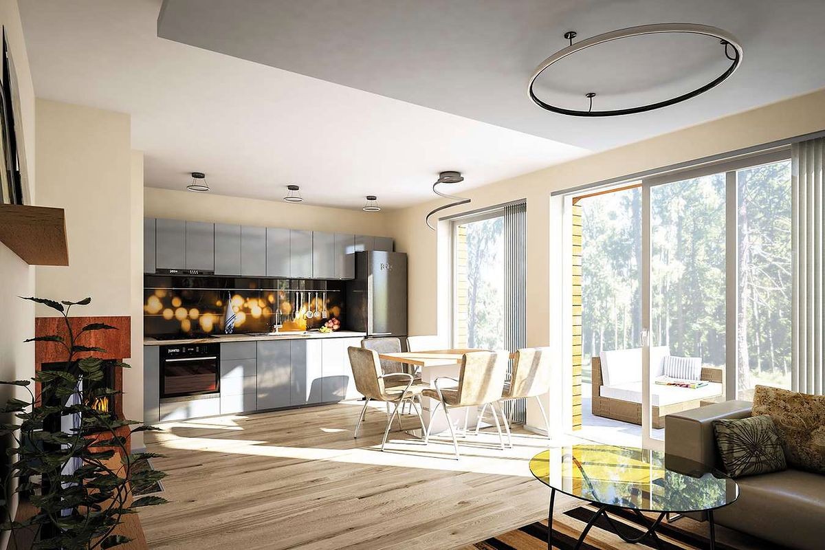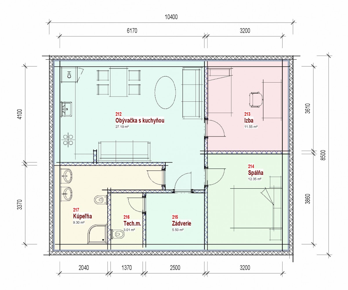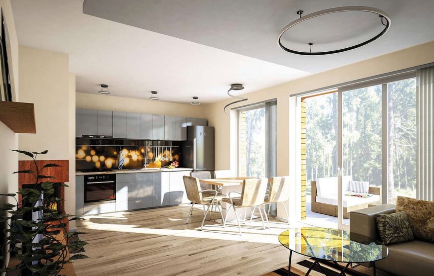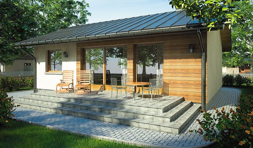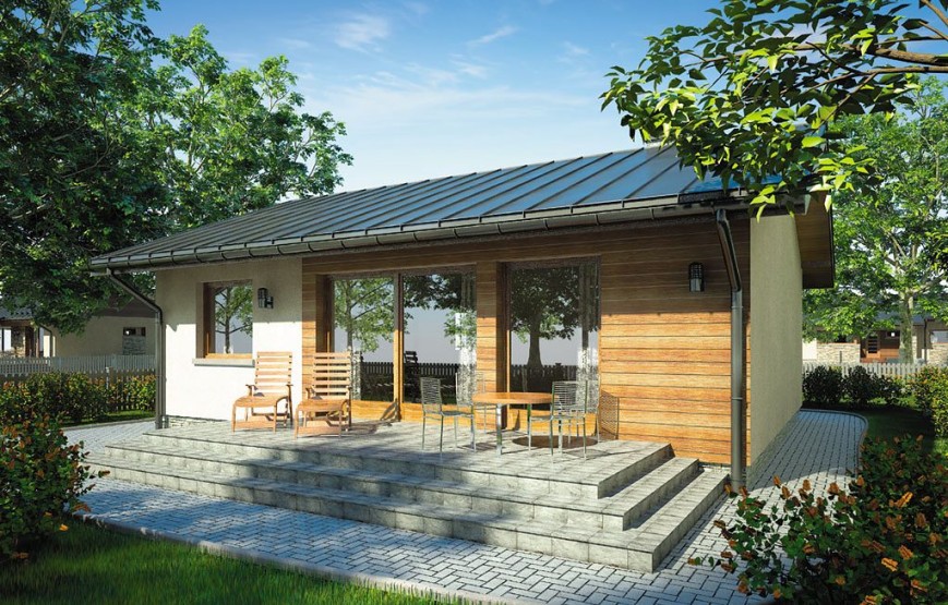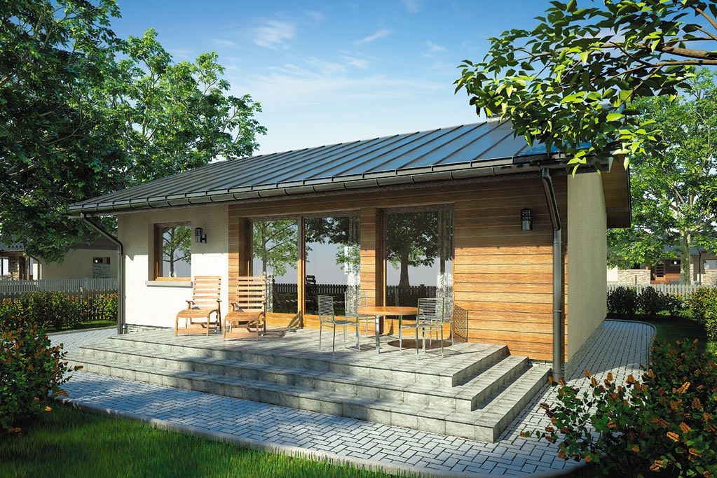 Dispozíciu domu tvorí kuchyňa, obývacia izba, 2xspálňa, kúpeľňa s WC. Z obývacej izby vedie výstup na terasu. Tento dom je možné objednať aj v bezbariérovom vyhotovení. Dom je vhodný do nízkej okolitej zástavby. Neobytné podkrovie môže slúžiť ako úložný priestor (v prípade sedlovej / valbovej strechy).