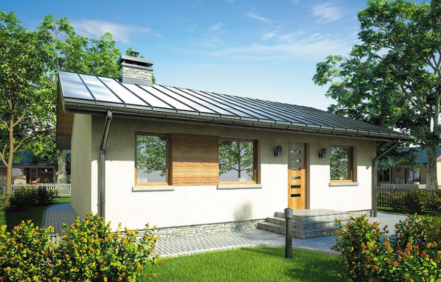 Samostatne stojaci prízemný rodinný dom FLEX 83 je vhodný do rovinatého, prípadne mierne svahovitého terénu. Je to menšej veľkostnej kategórie určený pre 3-4 člennú rodinu.
