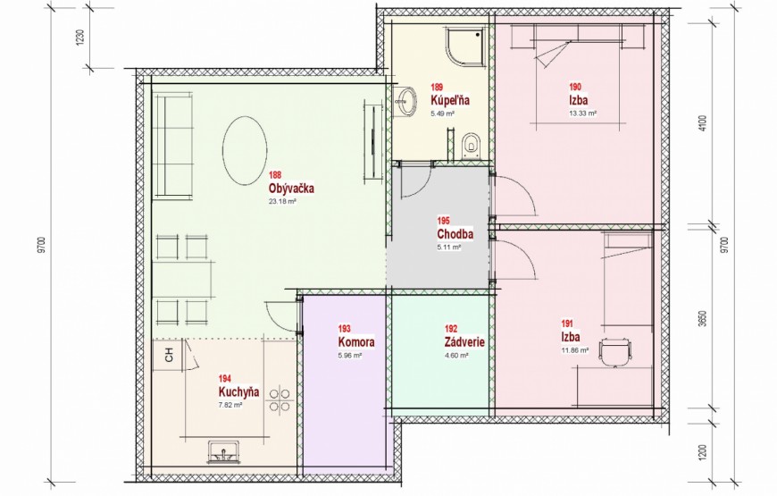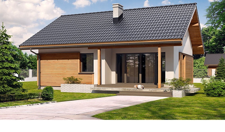 Samostatne stojaci prízemný rodinný dom FLEX 87 je vhodný do rovinatého, prípadne mierne svahovitého terénu. Je to strednej veľkostnej kategórie určený pre 4-5 člennú rodinu.