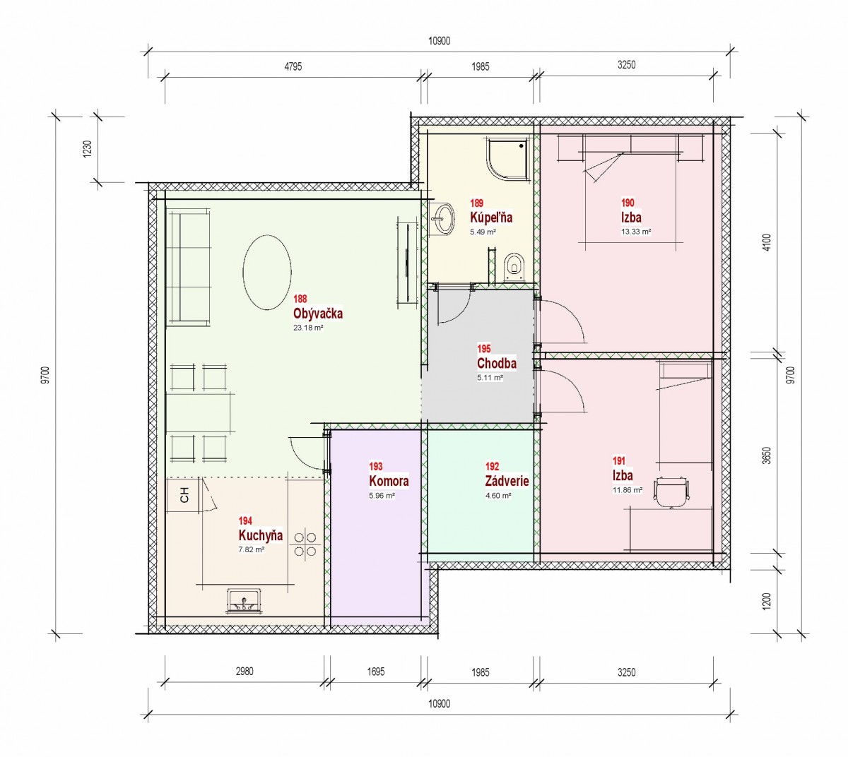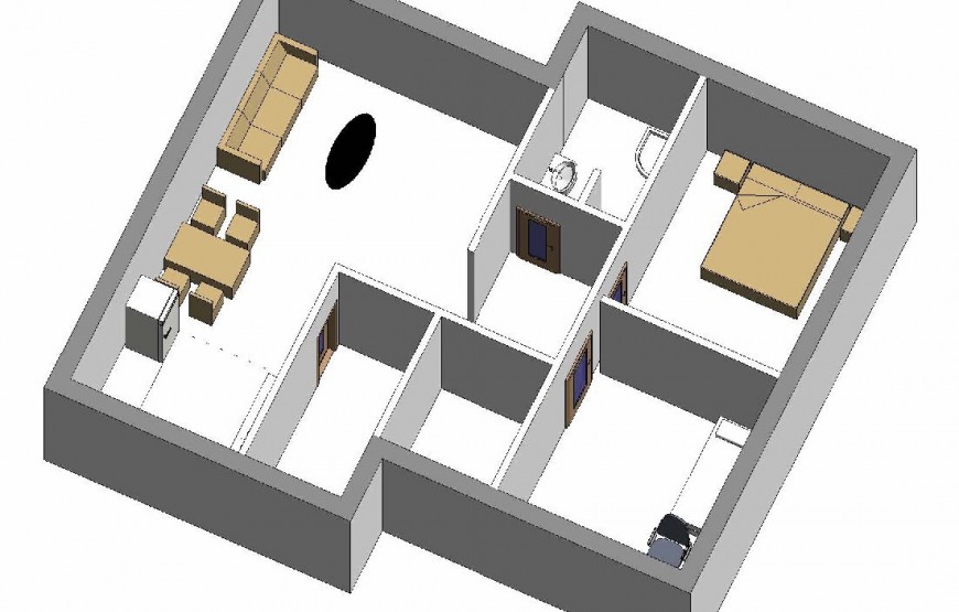 Dispozíciu domu tvorí kuchyňa, obývacia izba, 3xspálňa, kúpeľňa s WC. Z obývacej izby vedie výstup na terasu. Tento dom je možné objednať aj v bezbariérovom vyhotovení. Dom je vhodný do nízkej okolitej zástavby. Neobytné podkrovie môže slúžiť ako úložný priestor (v prípade sedlovej / valbovej strechy).