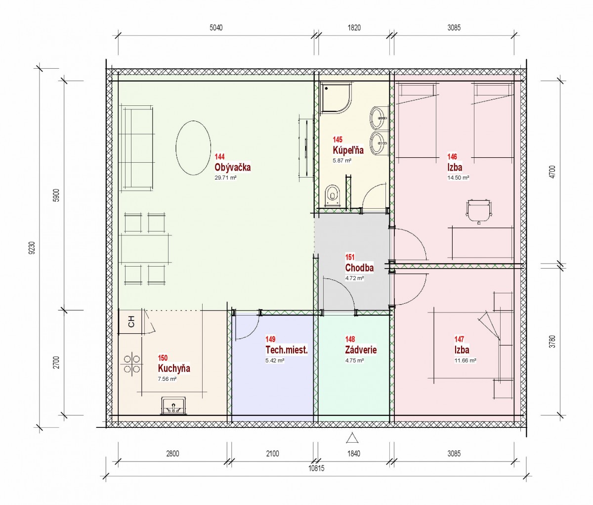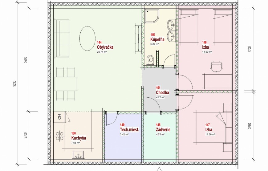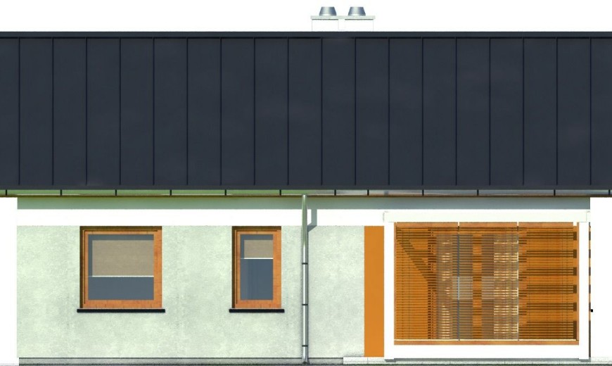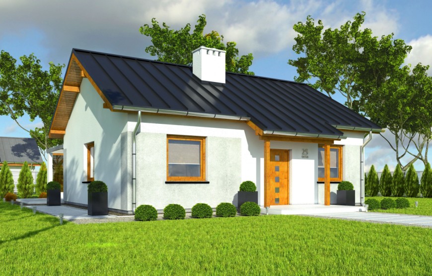 Samostatne stojaci prízemný rodinný dom FLEX 94 je vhodný do rovinatého, prípadne mierne svahovitého terénu. Je to strednej veľkostnej kategórie určený pre 4-5 člennú rodinu.
