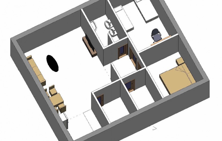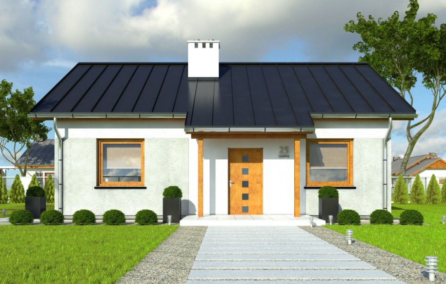 Dispozíciu domu tvorí kuchyňa, obývacia izba, 3xspálňa, kúpeľňa s WC. Z obývacej izby vedie výstup na terasu. Tento dom je možné objednať aj v bezbariérovom vyhotovení. Dom je vhodný do nízkej okolitej zástavby. Neobytné podkrovie môže slúžiť ako úložný priestor (v prípade sedlovej / valbovej strechy).